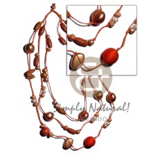 Latest designs of 22 pcs. brown kukui nuts w/ yellow mongo shell rings / 30in in matching adjustable ribbon w/ the ma..