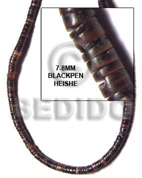 Tags: Black, 16 inches, Black Pen Shell, Heishi, 7-8 mm, Shell Heishe Shell Beads