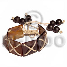 Tags: Black, Wood Beads, Black Tab Shell, Square, 7.5 inches, Wax Cord, Sea Shell Bracelets