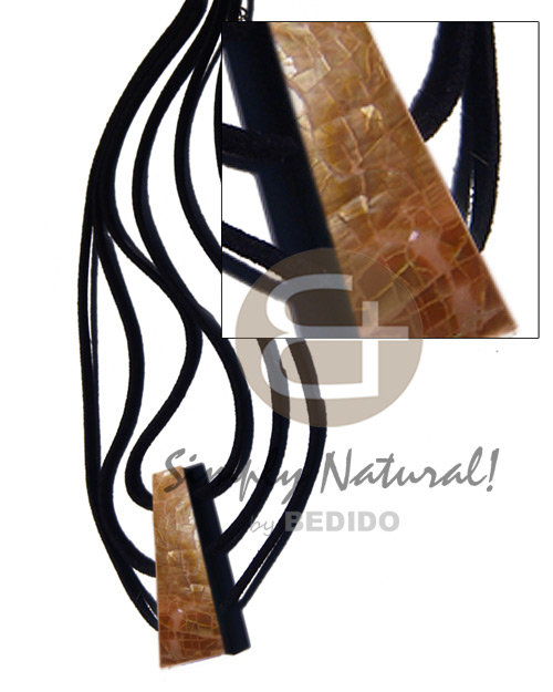 50mmx18mm triangular laminated cracking brownlip pendant w/ backing on 3 rows leather thong