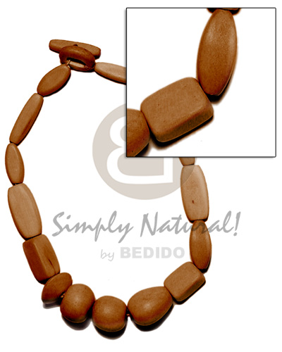 Brown White Wood Dyed Assorted Shapes 18 inches Wooden Necklaces BFJ1069NK