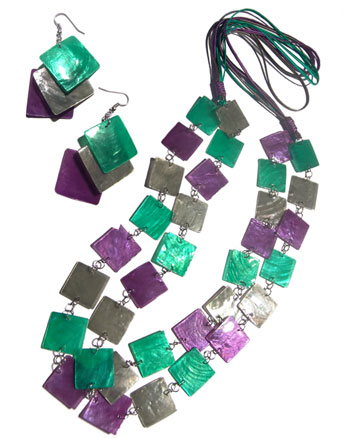 Tags: Capiz Shell, Lavender, Set Jewelry Earrings Necklace, Green, Set Jewelry