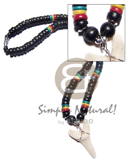 Rasta / 7-8mm black coco pklt w/ carabao bone tooth pendant / 18in