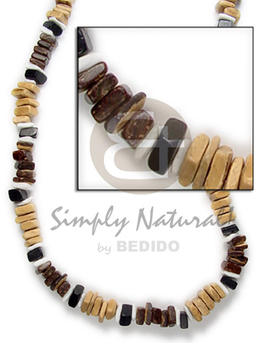 • Coconut Beads Square Cut White Shell Brown Black Natural Dyed Coconut Necklace BFJ040NK