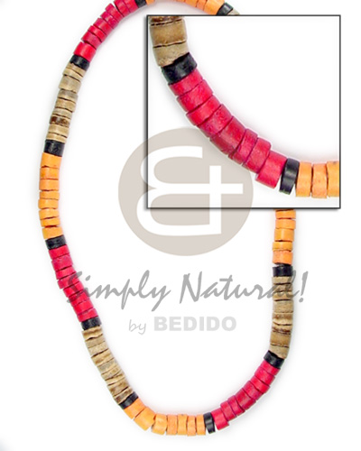 • Coconut Heishi Brown Red Orange Black Multi-Color 4-5 mm Coconut Necklace BFJ043NK