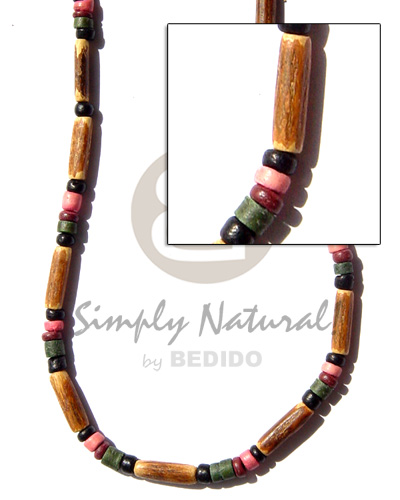 • Coconut Pokalet Black Blue Maroon Multi-Color Bamboo Tube Coconut Necklace BFJ112NK