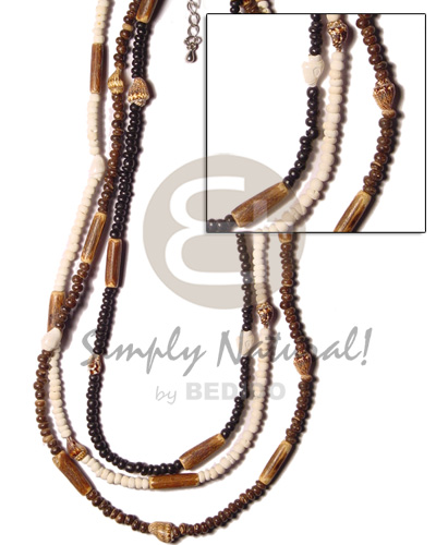 Tags: Coconut Pokalet, Multi Row, 2-3 mm, Black, Bleached White, Brown, Nassa White Shell, Coconut Necklace