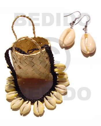 • Cowrie Tiger Shell Macrame thread Tiger Black Set Jewelry Earrings Necklace Set Jewelry BFJ033SJ