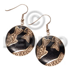• Dangling Wood Hand Painted Black Gold Fish Wood Earrings BFJ5538ER