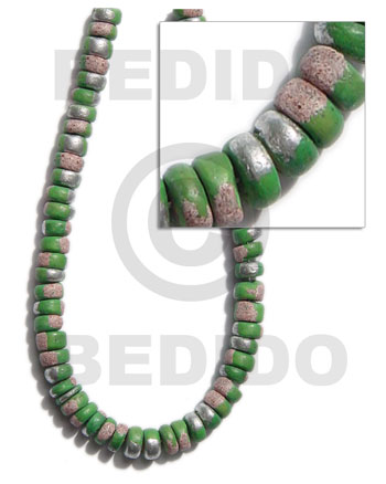 Tags: Green, 16 inches, Coconut, 4-5 mm, Pokalet, Painted, Coco Splashing Beads