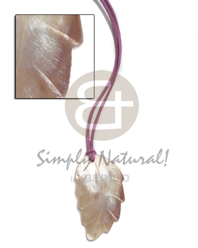 Lavender leather thong w/ 60x32mm hammershell leaf pendant