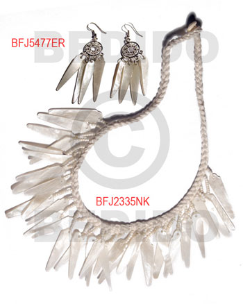 • Hammer Shell Macrame thread White Set Jewelry Earrings Necklace Set Jewelry BFJ007SJ