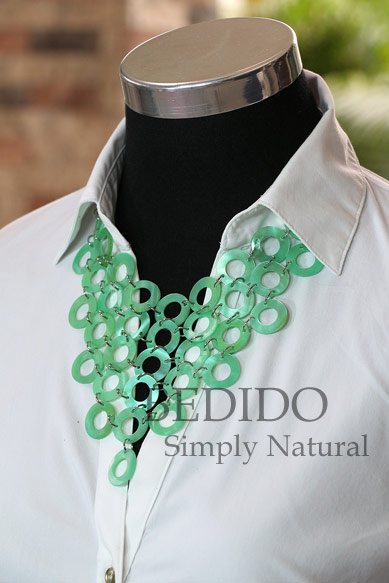 Customize (green) cleopatra/ 36 pcs. 20mm round hammershell rings in jump rings / 18 in w/ ext. chain