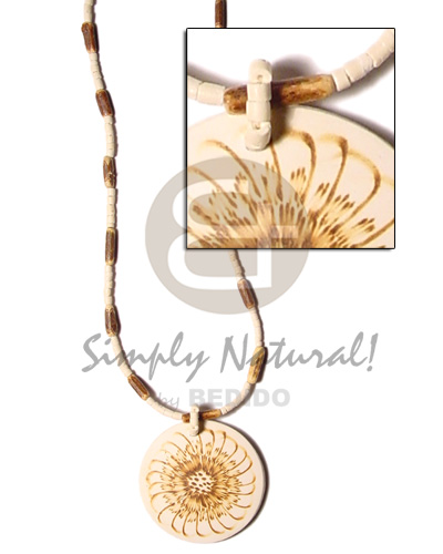 2-3mm coco bleach / siged / w/ 50mm coco pendant w/ flower burning design