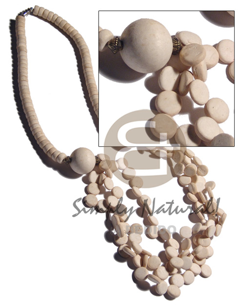 7-8mm coco pklt. bleach white w/ 3 graduated rows bleach white 10mm coco sidedrill and 20mm round buffed bleach nat. white wood beads accent / 26 in.