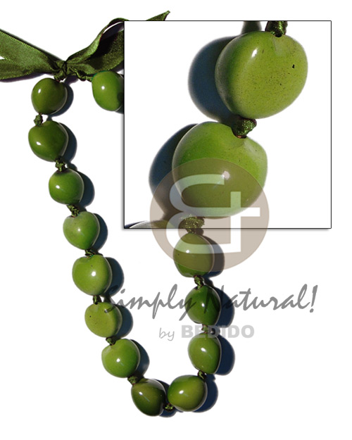 Tags: Kukui Nuts, Ribbon, Green, Painted, Lumbang Seed, Kukui Lei Necklace