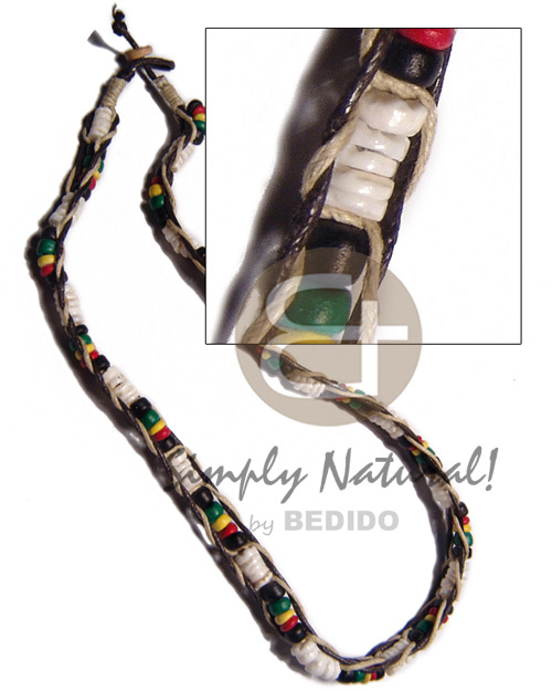 4-5mm white clam and 4-5mm rasta color combi in braided wax cord / 18in