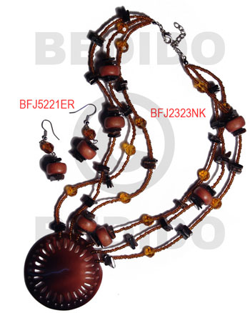 Tags: Black Tab Shell, Wood Beads, Glass Beads, Black, Brown, Set Jewelry Earrings Necklace, Set Jewelry