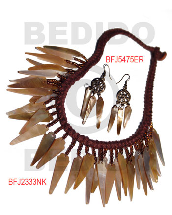 • Brown Lip Shell Macrame thread Brown Set Jewelry Earrings Necklace Set Jewelry BFJ009SJ