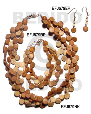 Coconut Beads Brown Set Jewelry 18 in necklace 7.5 Bracelets Earrings Set Jewelry BFJ080SJ