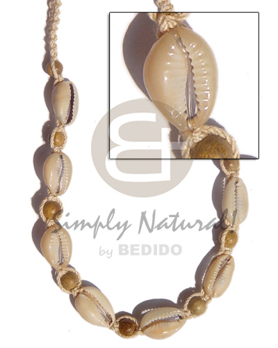 • Beige adjustable Sigay Cowry Shell Robles Wood Macrame Natural Natural Shell Necklace BFJ239NK