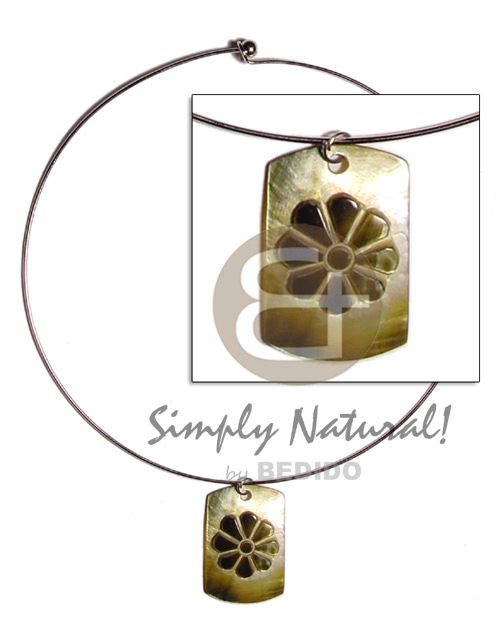• Black Lip Shell Dog Tag Metal Hoop Ring Shell Necklace BFJ741NK