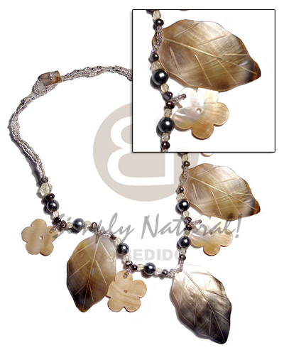 Tags: Black Lip Shell, Leaves, Pearls, Glass Beads, 30 mm, 35 mm, Mother-Of-Pearl, Necklace Shell Necklaces