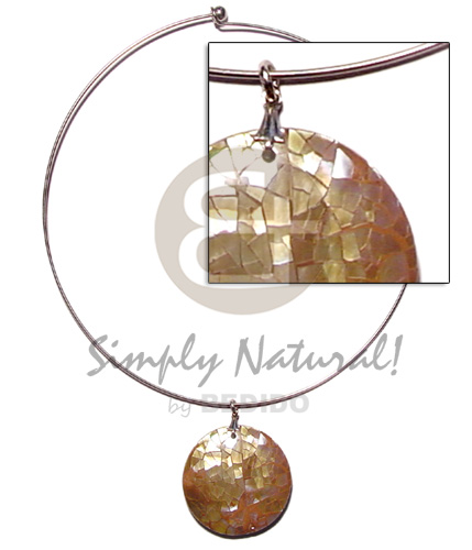 Nickel-free silver hoop ring w/ 40mm round brownlip shell cracking w/ resin backing