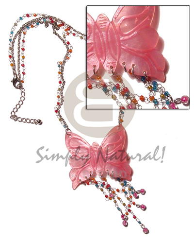 Tags: Hammer Shell, Butterfly, Glass Beads, Metal Chain, Metal Looping, 50 mm, Necklace Shell Necklaces