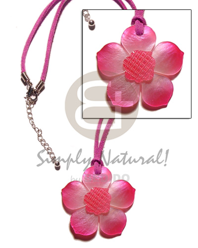 Graduated pink tones hammershell flower pendant in pink wax cord