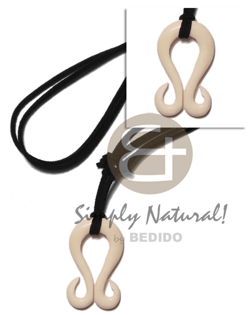 40mm white celtic carabao bone double hook on adjustable leather thong