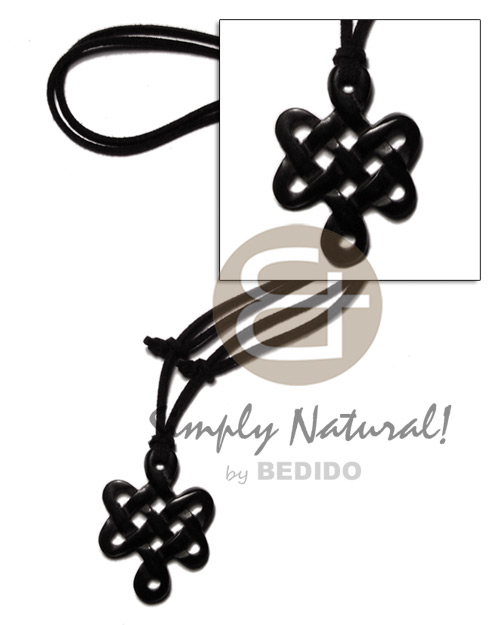 Celtic knot black carabao horn 40mm on adjustable leather thong