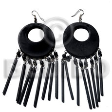 Dangling 50mm round nat. black wood w/ 20mm inner hole and dangling 45mm 7pcs. rounded wood sticks