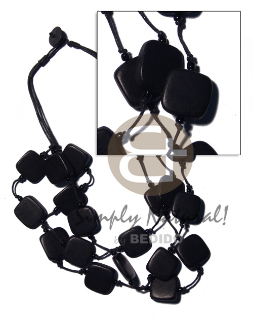 3 rows wax cord w/ 20mmx20mm nat. wood sliced melon in black