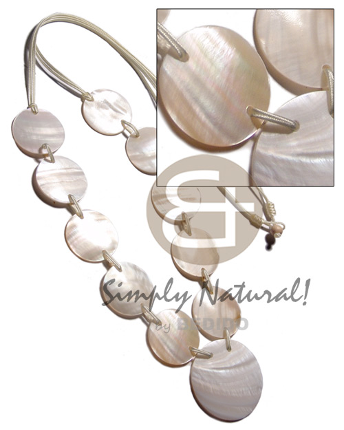 10 pcs. 35mm round kabibe shells & 1pc. 50mm round kabibe shell center accent in satin double cord / 40 in.