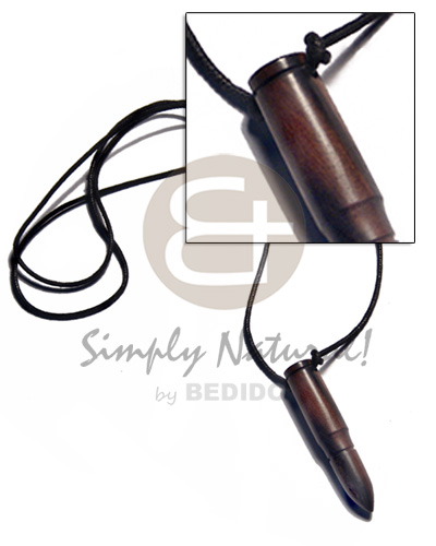 55mmx10mm camagong tiger wood bullet pendant in adjustable 32in wax cord