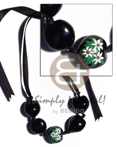 Tags: Kukui Nuts, Ribbon, Black, Hand Painted, Lumbang Seed, Choker, Kukui Lei Necklace