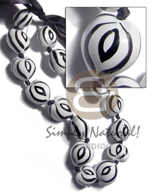 Kukui Nuts Ribbon Zebra Hand Painted Lumbang Seed Kukui Lei Necklace BFJ3102NK