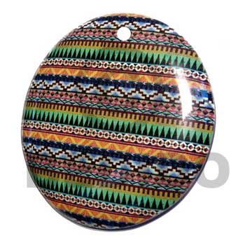 Eclectic fusion collection / 70mm round wooden pendant wrapped in navajo tribal printed parchment laminated in resin/ thickness 8mm (s casing)