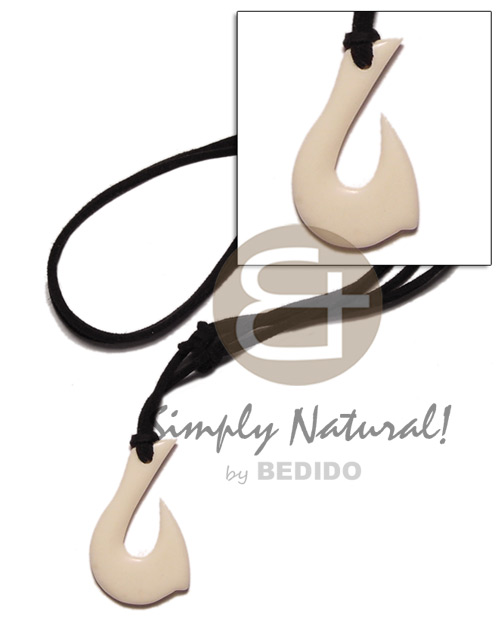 • Leather Thong Bone adjustable Natural White 40 mm Hook Necklace - Surfer BFJ1412NK