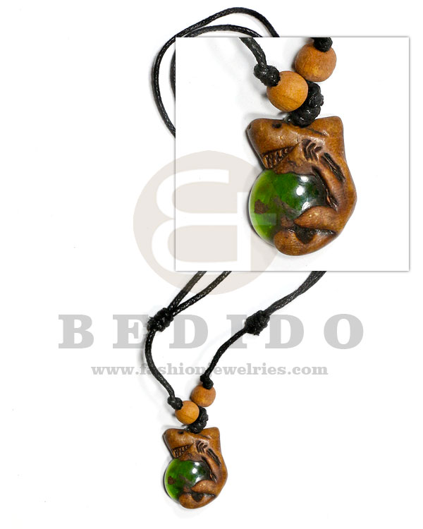 Adjustable leather thong with shark and resin pendant