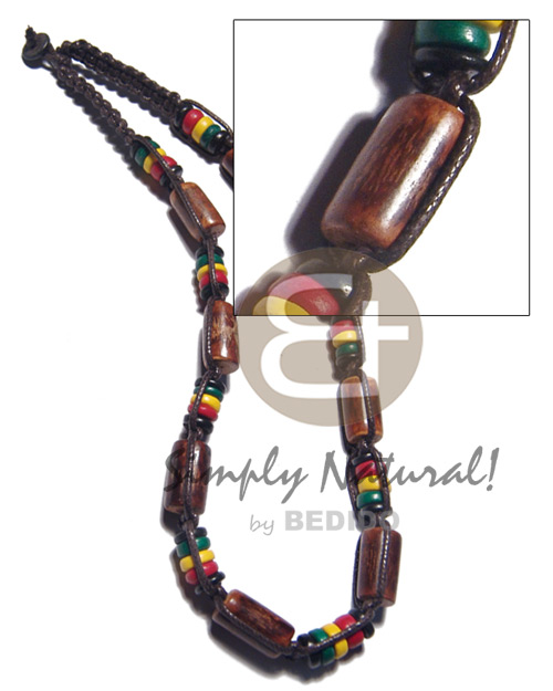 Rasta / 7-8mm coco pklt jumbo w/ sig-id wood tube combi in brown macrame wax cord / 19in