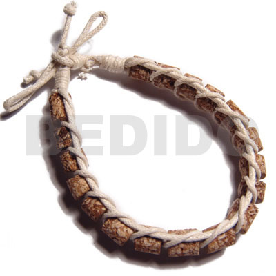• Mahogany Cylinder Tube Macrame Wax Cord Beige Wood Bracelets BFJ5266BR