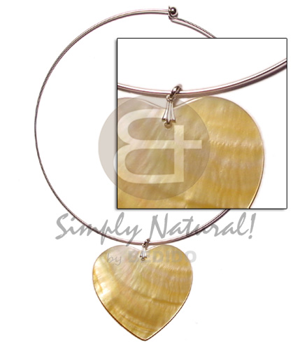 Mother-Of-Pearl Nickel-Free Silver Hoop Ring 40 mm Heart Shell Necklace BFJ545NK