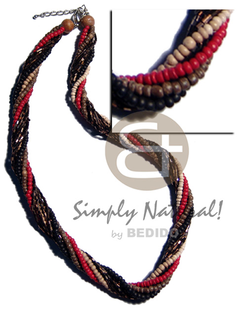 • Multi Row Black Red Brown Glass Beads Coconut Pokalet Coconut Necklace BFJ2143NK