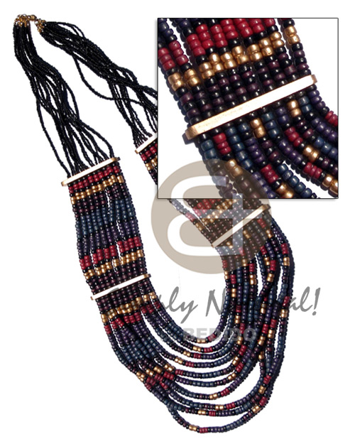 10 rows 4-5mm coco pklt. in graduated flat layers w/ glass beads & wood combi / 38 in.