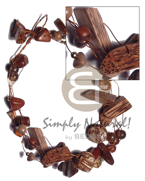 5 rows copper wire choker w/ palmwood , bayong , robles wood beads accent in varied shapes and sizes / 17in