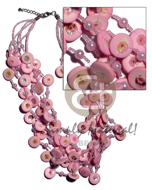 • Multi Row Pink Coconut Pearls Glass Beads Coconut Necklace BFJ2108NK