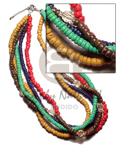 Multi Row Red Navy Blue Mustard Green Coconut Pokalet Coconut Necklace BFJ1570NK