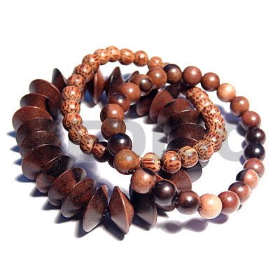Beach bum series / elastic hardwood beads - 8mm round palmwood, 10mm camagong tiger and camagong tiger saucer 7x15mm trio